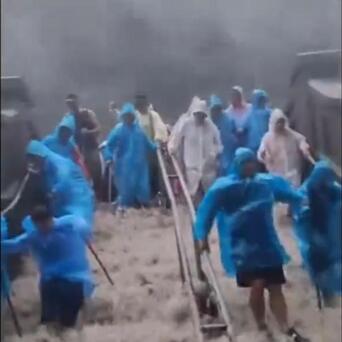 泰山景区暴雨山路变瀑布:游客下山鞋子险被冲掉